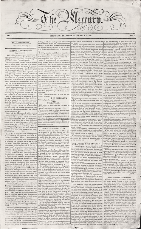 Long before the Internet, Pittsburgh was known as the source of information. Pittsburgh’s high-quality newspapers included the “Pittsburgh Gazette,” the “Mercury,” the “Commonwealth” and the “Almanack”. Guess who was the editor of Mercury? John Snowden, a man known for his honesty and integrity.